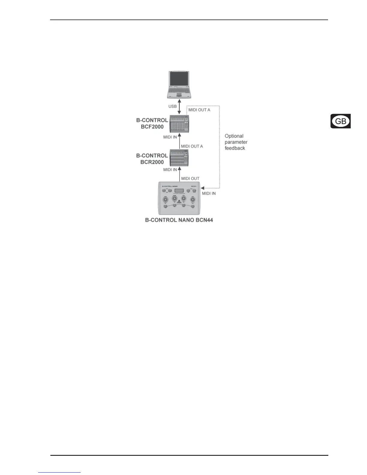 Together with the BCN44, several MIDI controllers can be connected to one another in order to construct a