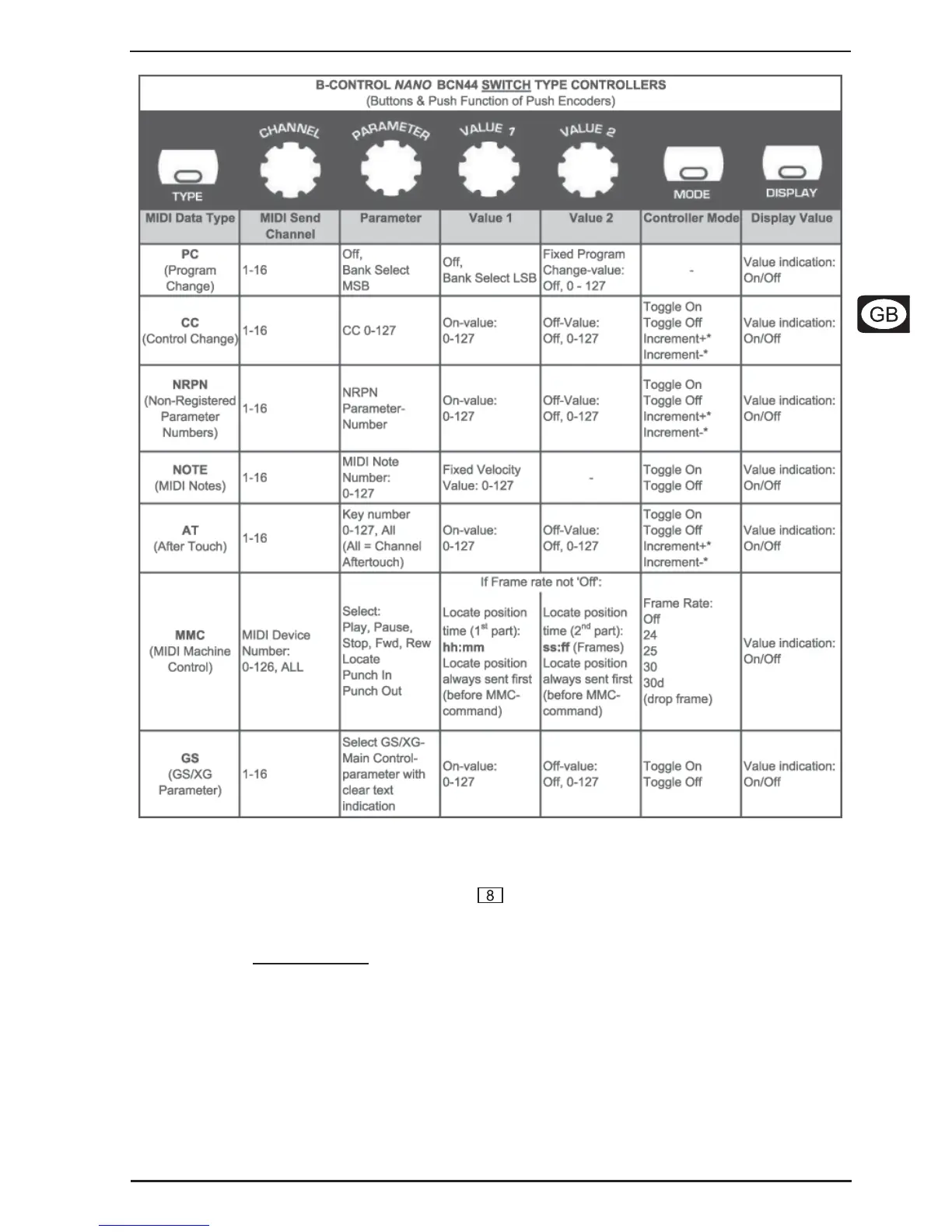 (0 to +127/-127) is selectable with VALUE 1 (VALUE 2 has no function in this mode!)