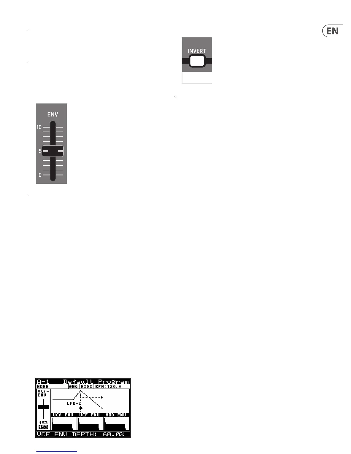 advised to set the VCF ENV fader to a lower level when using normal polarity,
