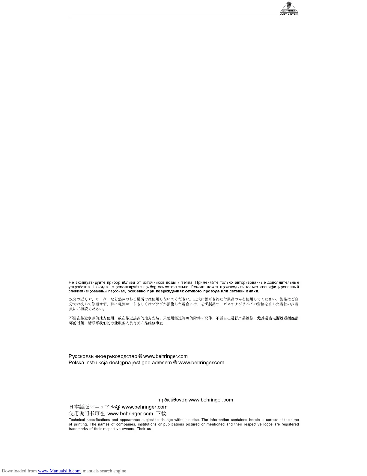 Ðóññêîÿçû÷íîåðóêîâîäñòâî@www.behringer.com