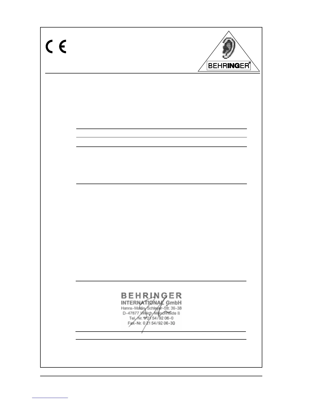 We, BEHRINGER INTERNATIONAL GmbH