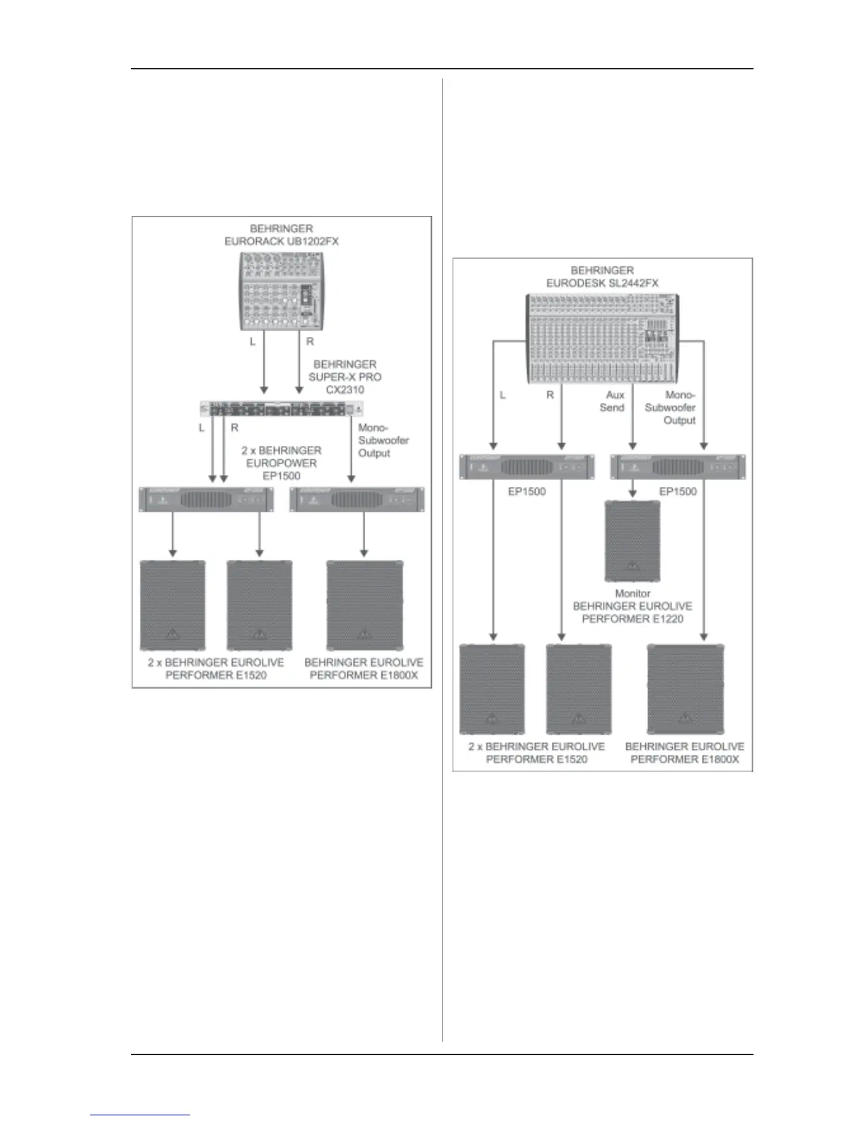 (Aux Send). A separate subwoofer output feeds an E1800X
