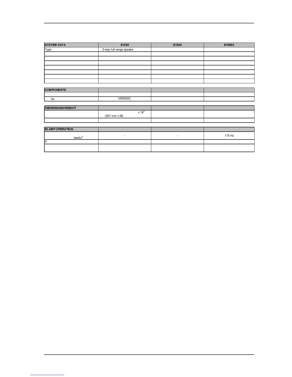 Type 2-way full-range speaker (12" + 1") 2-way full-range speaker (15" + 1") Subwoofer (18")
