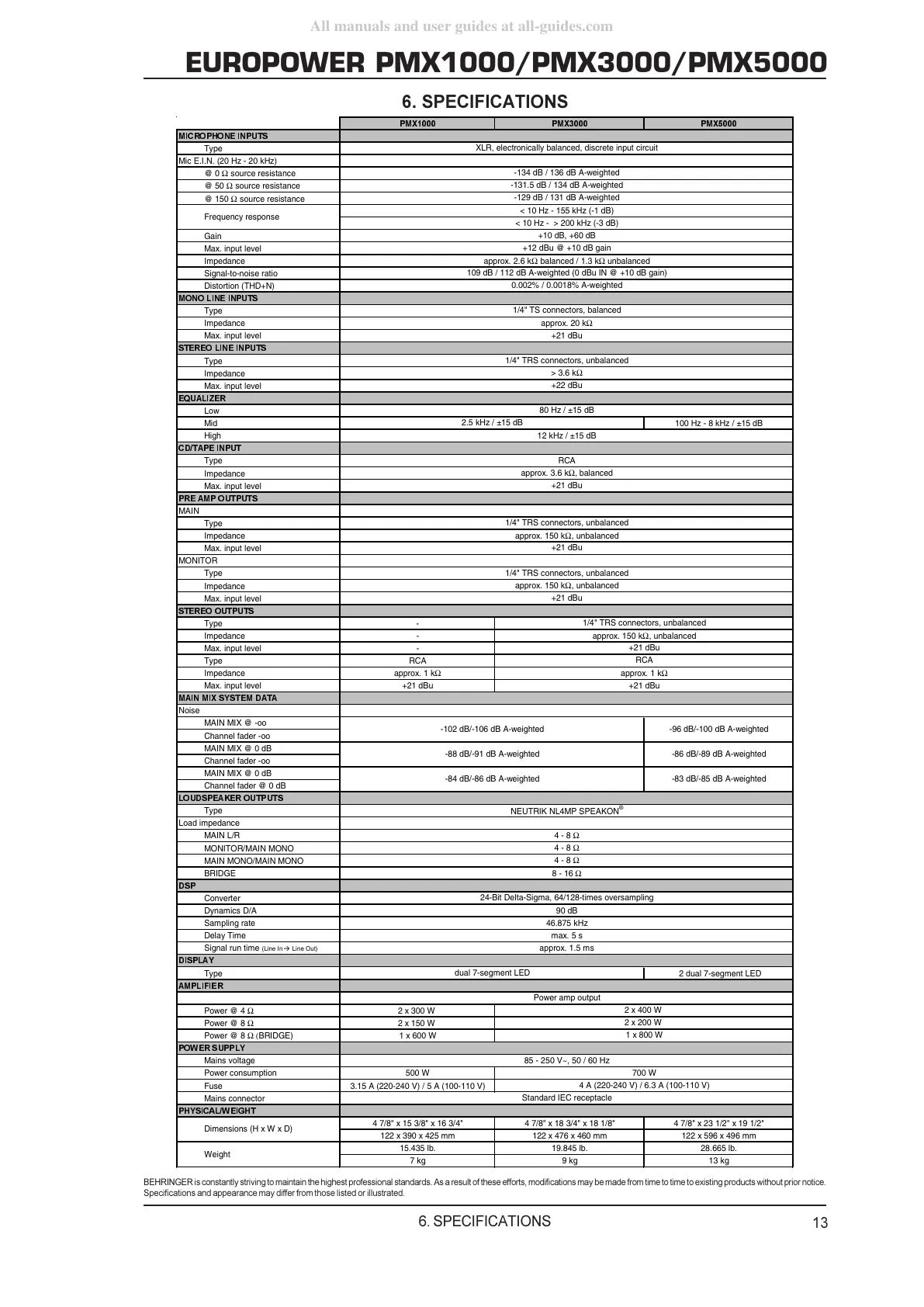 EUROPOWER PMX1000/PMX3000/PMX5000