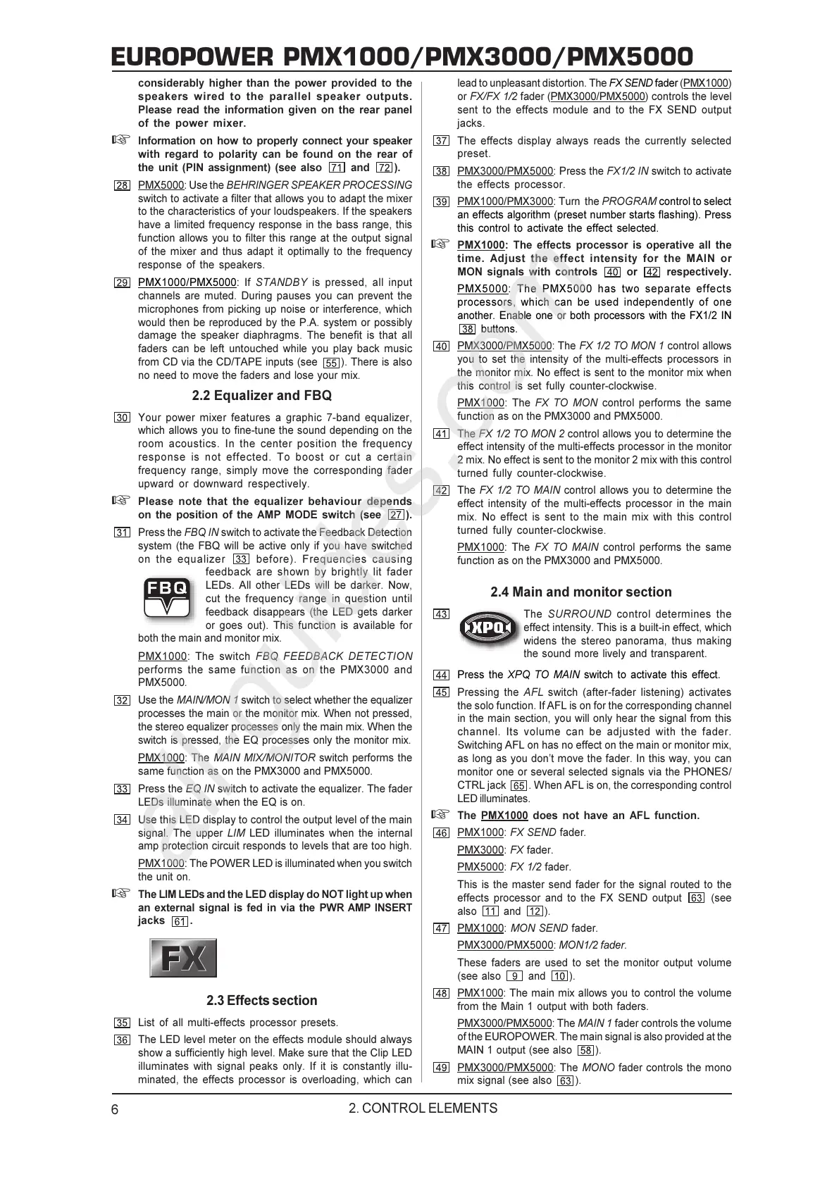 PMX1000: The switch FBQ FEEDBACK DETECTION