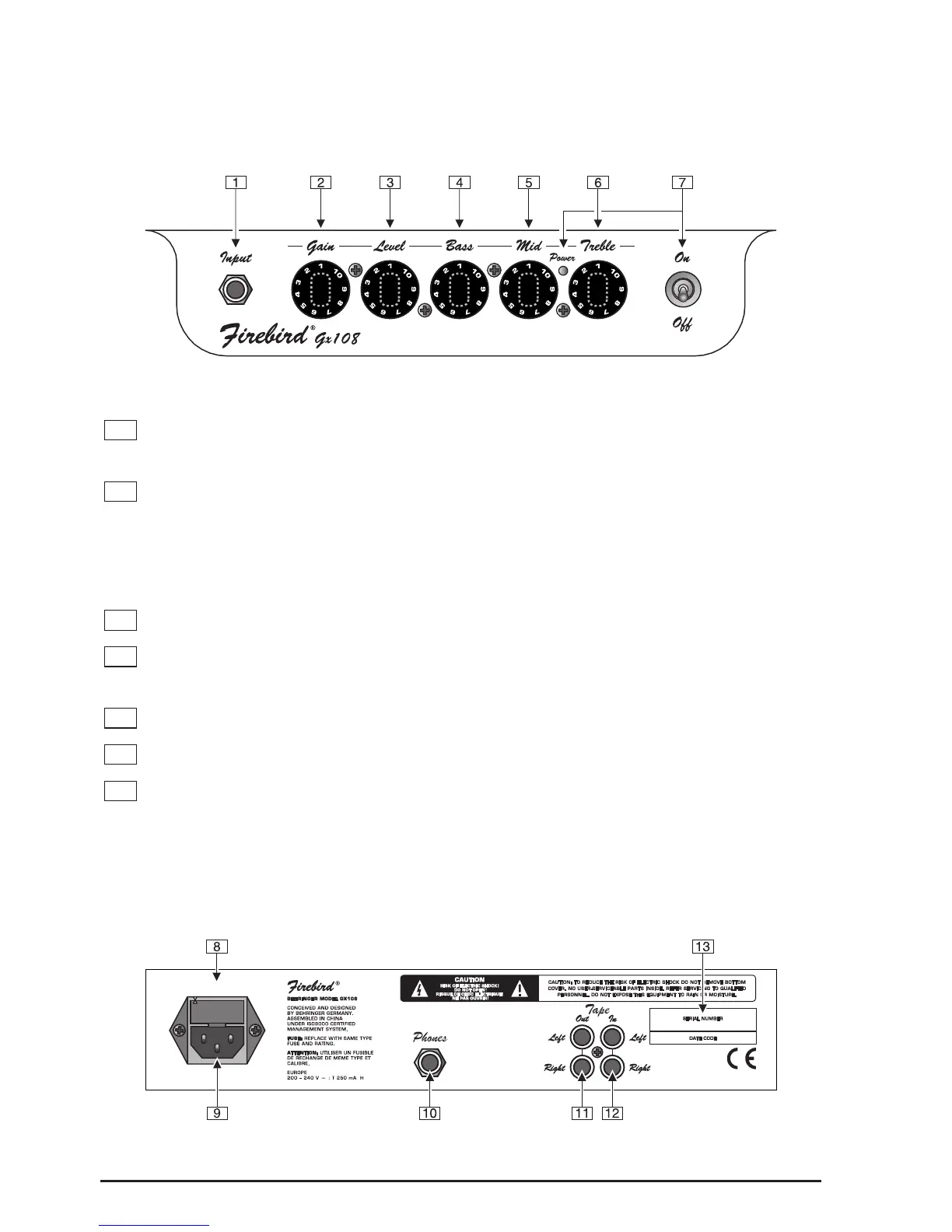 INPUT is the GX108’s 1/4" jack input for your guitar. Use a commercial