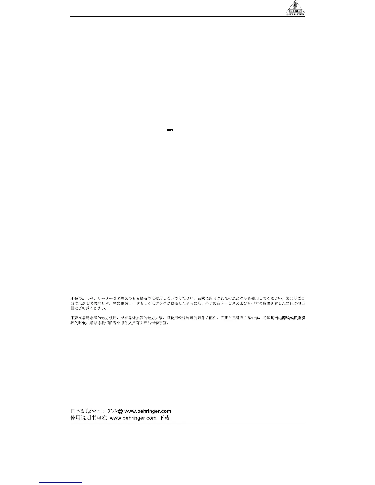 logo and JUST LISTEN are trademarks of BEHRINGER. ALL RIGHTS RESERVED. © 2006 BEHRINGER International GmbH,