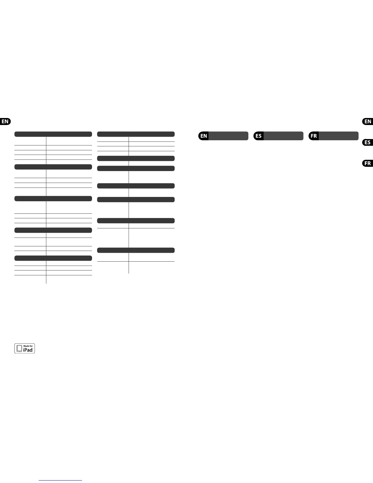 “Made for iPad” means that an electronic accessory has been designed to connect speci cally to iPad, and has been certi ed by the developer to meet Apple