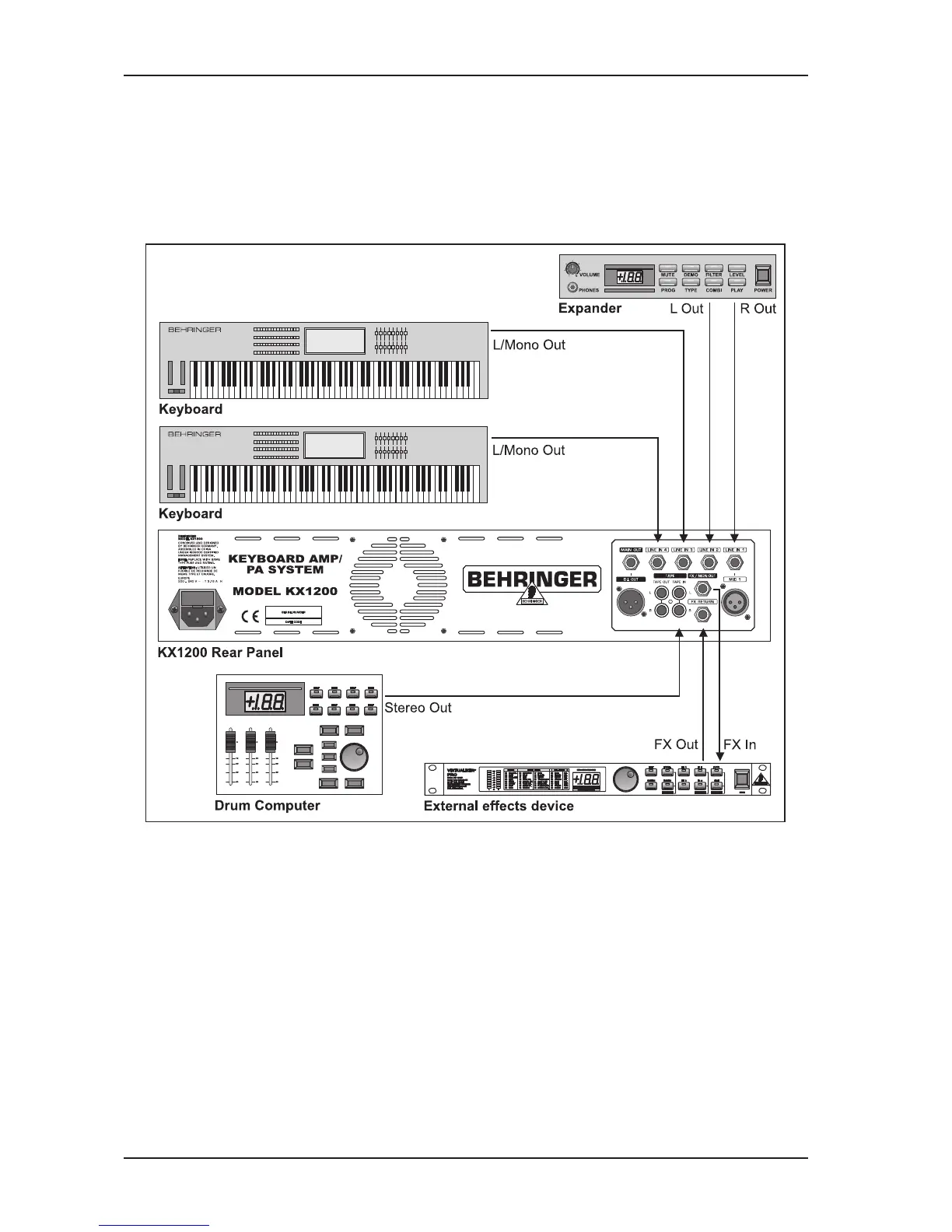 2.1 Standard keyboard set-up with external drum computer and effects device