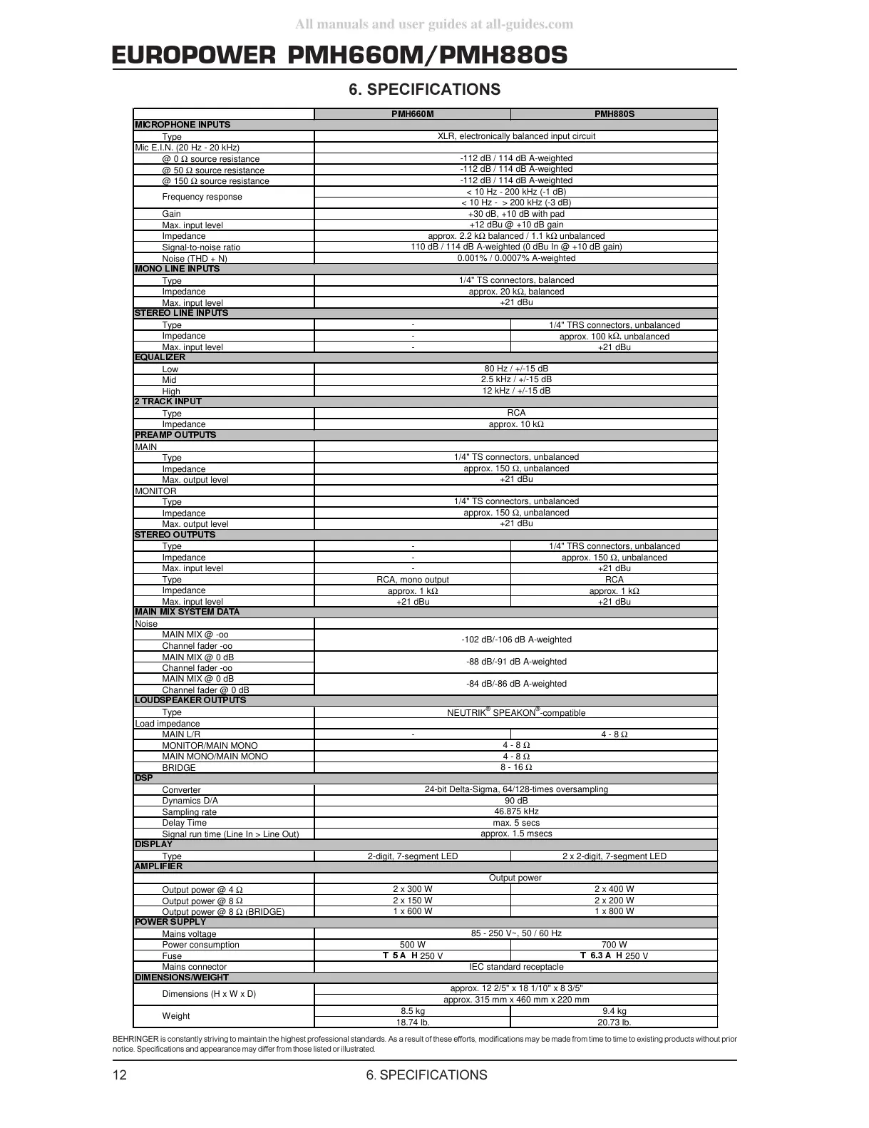 BEHRINGER is constantly striving to maintain the highest professional standards. As a result of these efforts, modifications may be made from time to time to existing products without prior