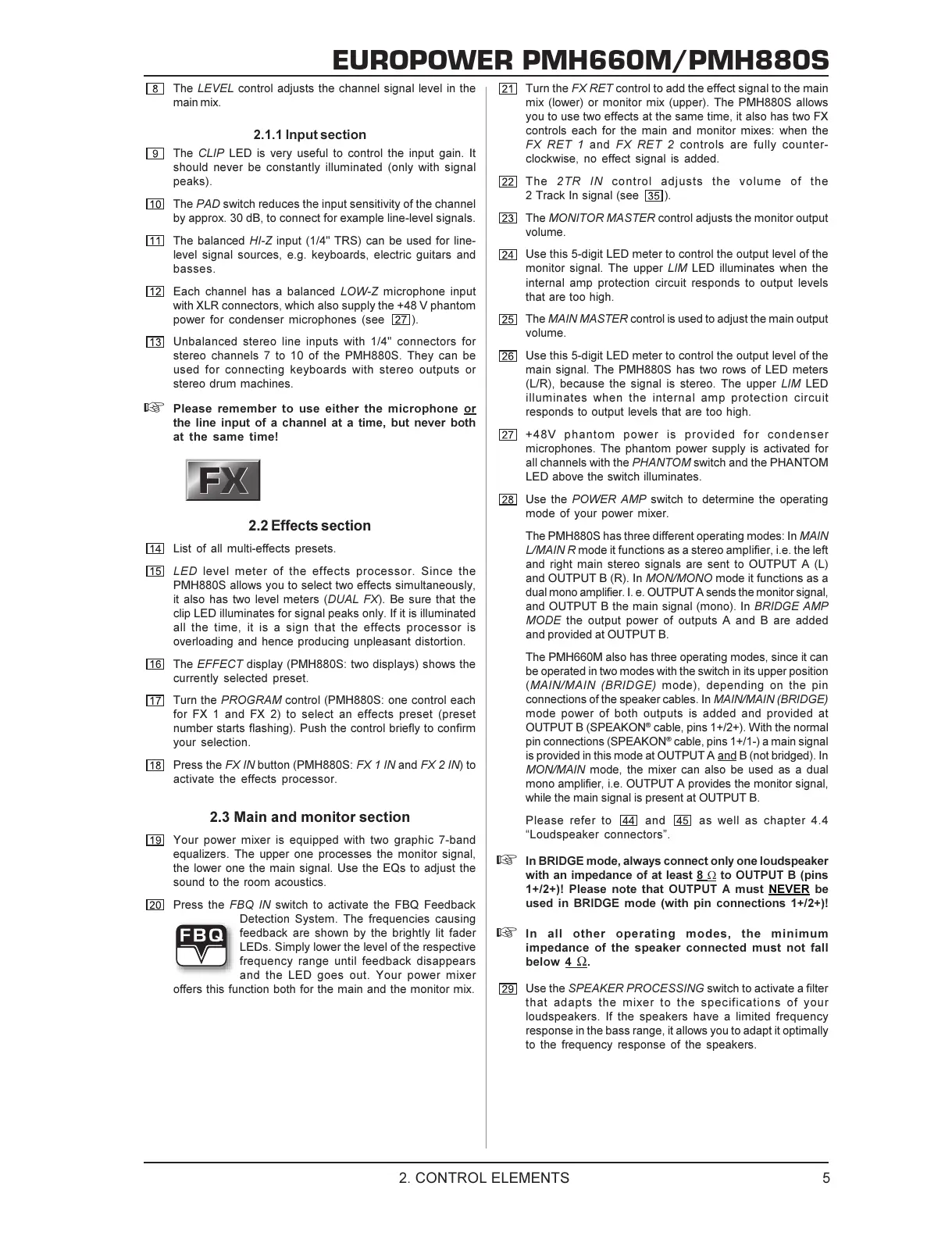 Press the FX IN button (PMH880S: FX 1 IN and FX 2 IN) to