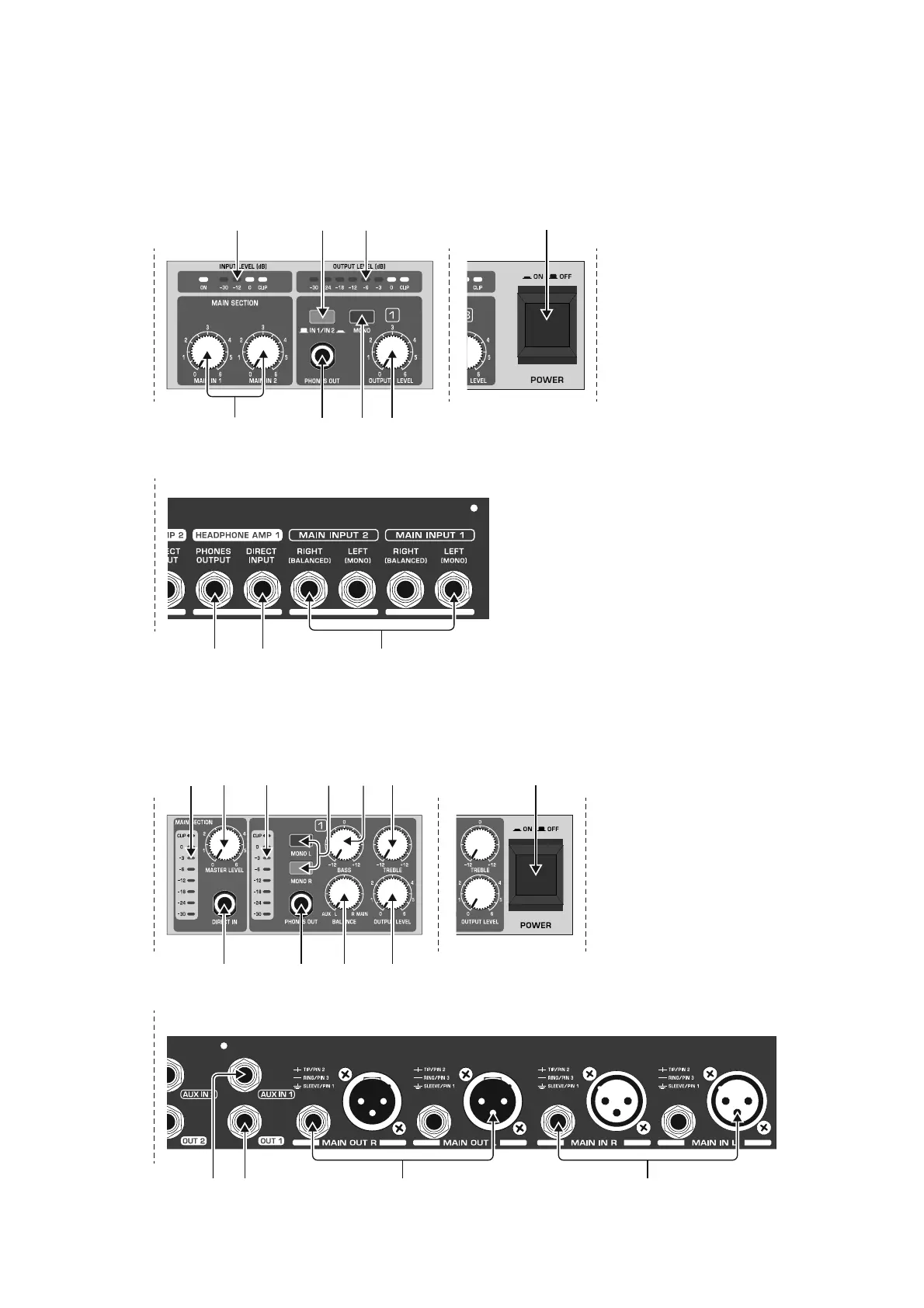(2) The MASTER LEVEL knob(s) adjus