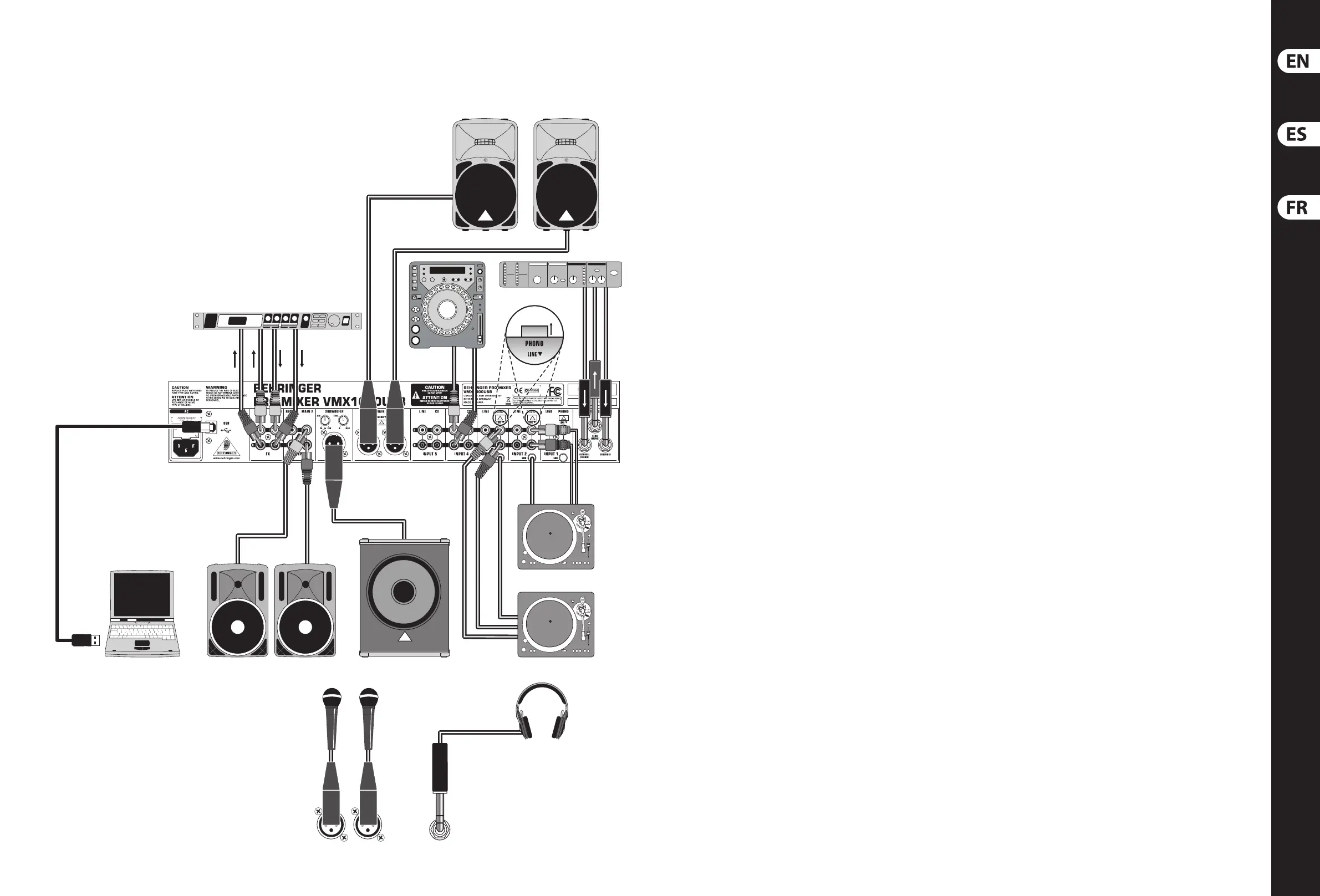 PRO MIXER SERIES VMX100USB/VMX200USB/VMX30 0USB/VMX1000USB Hook-up