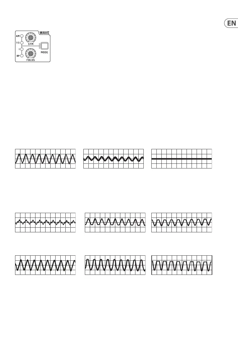 The Sym(metry) control causes the top of the waveform to be folded in a dierent way to the bottom, thus altering the timbre further.