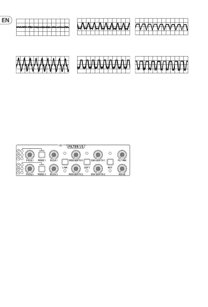 The lters’ cuto frequencies can be set using the freq 1 and 2 controls and can also be externally controlled by a voltage in the range -5V