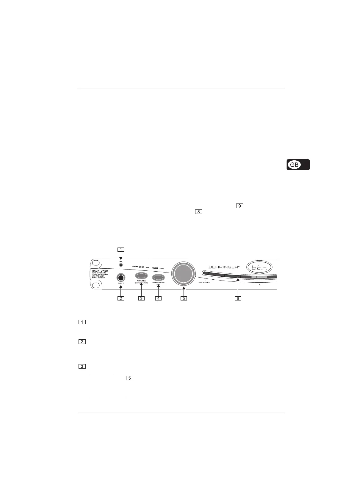 The RACKTUNERs operating modetuner or metronome modealso determines button function.