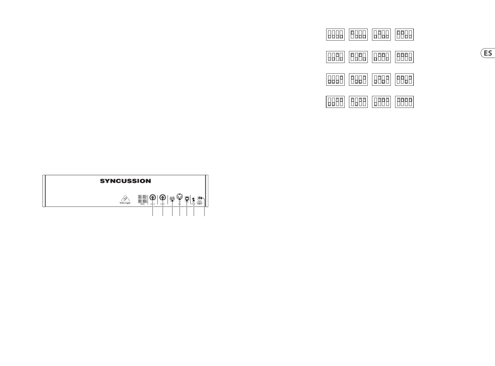 Mantenga presionados los botones CH 1 TRIG y CH 2 TRIG mientras enciende el SY-1. Una pulsación adicional del botón CH 1 TRIG inicia la