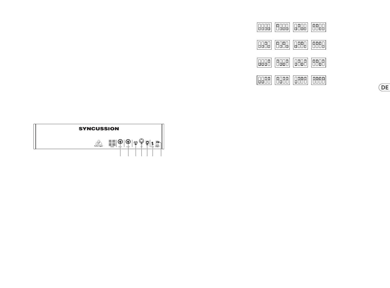 (42) MIDI CHANNEL – Mit diesen DIP-Schaltern stellen Sie den MIDI-Kanal ein (siehe MIDI-Betrieb unten).