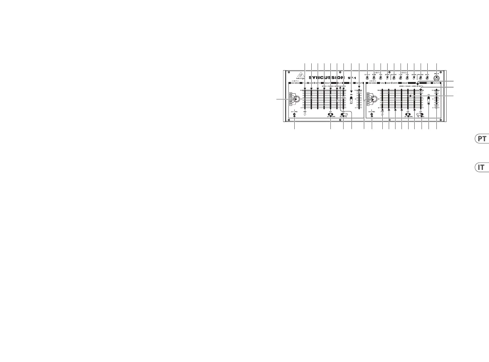 I controlli, interruttori e LED 12–25 e 26–39 sono duplicati e relativi ai canali 1 e 2.