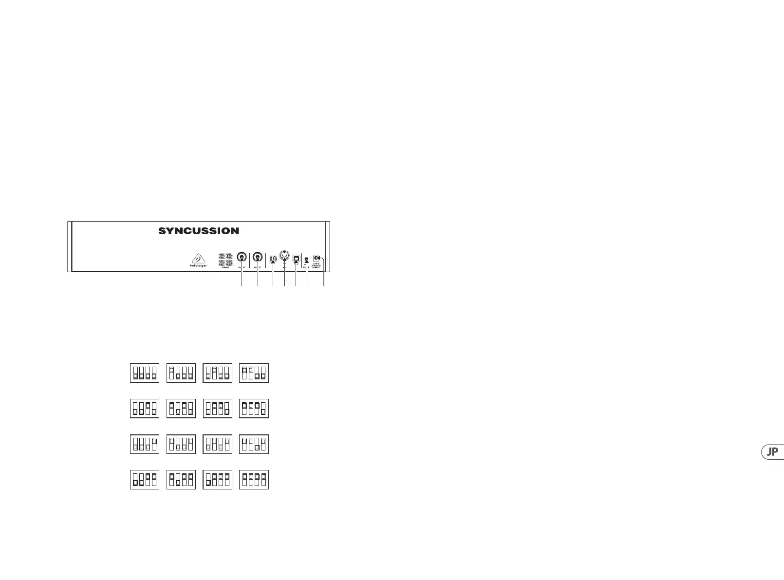 上の MIDI チャンネルに応答します (注意 – ディップ スイッチ が 16 の 場 合 、チ ャ ン ネ ル 2 は、MIDI チャンネル 1 ではな