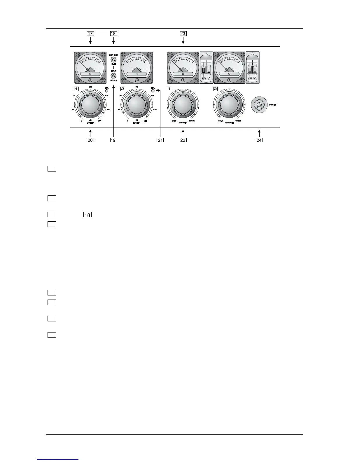 With the GAINRED/LEVEL switch the above described VU meters can be switched between LEVEL or
