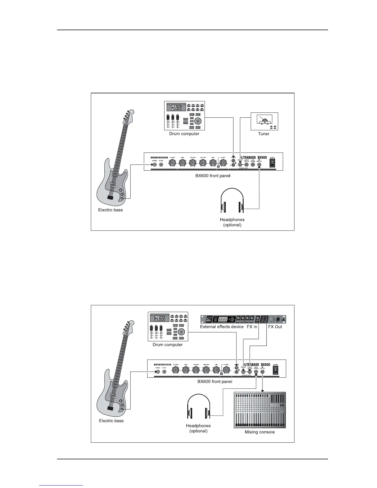 2.1 Standard set-up comprising external drum computer, tuner and headphones