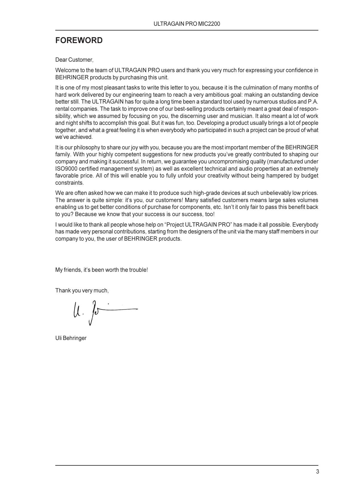 company to you, the user of BEHRINGER products.