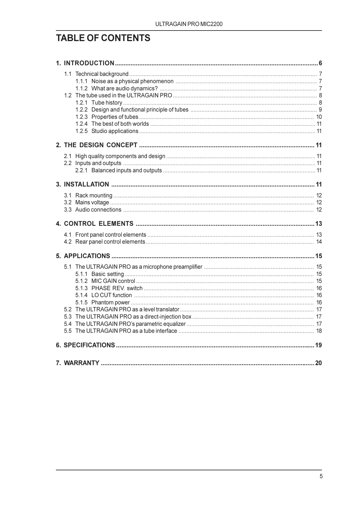 5.5 The ULTRAGAIN PRO as a tube interface ..................................................................................... 18