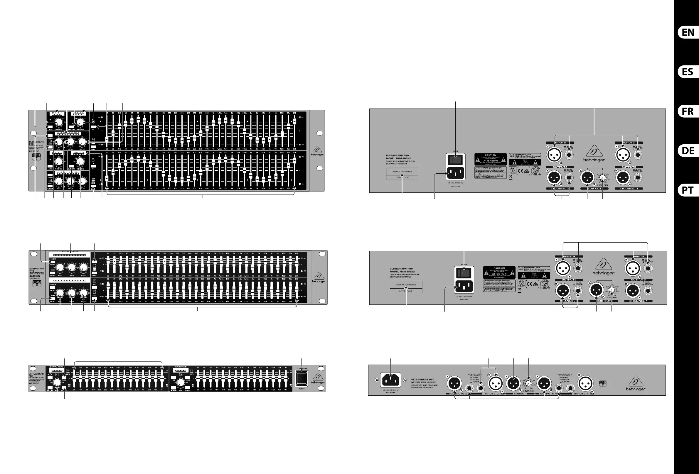 Behringer Ultragraph PRO FBQ1502HD - ULTRAGRAPH PRO Controls Overview; Front Panel Controls Identification; Rear Panel Connectivity Identification