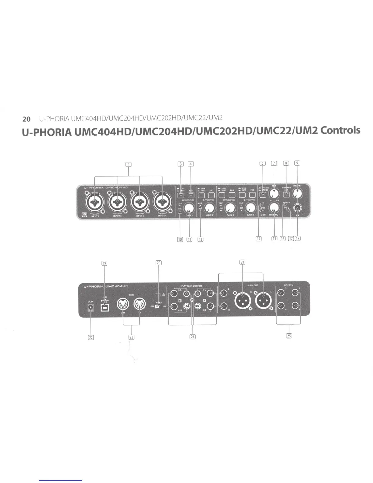 U-PHORIA UMC404HD/UMC204HD/UMC202HD/UMC22/UM2 Controls