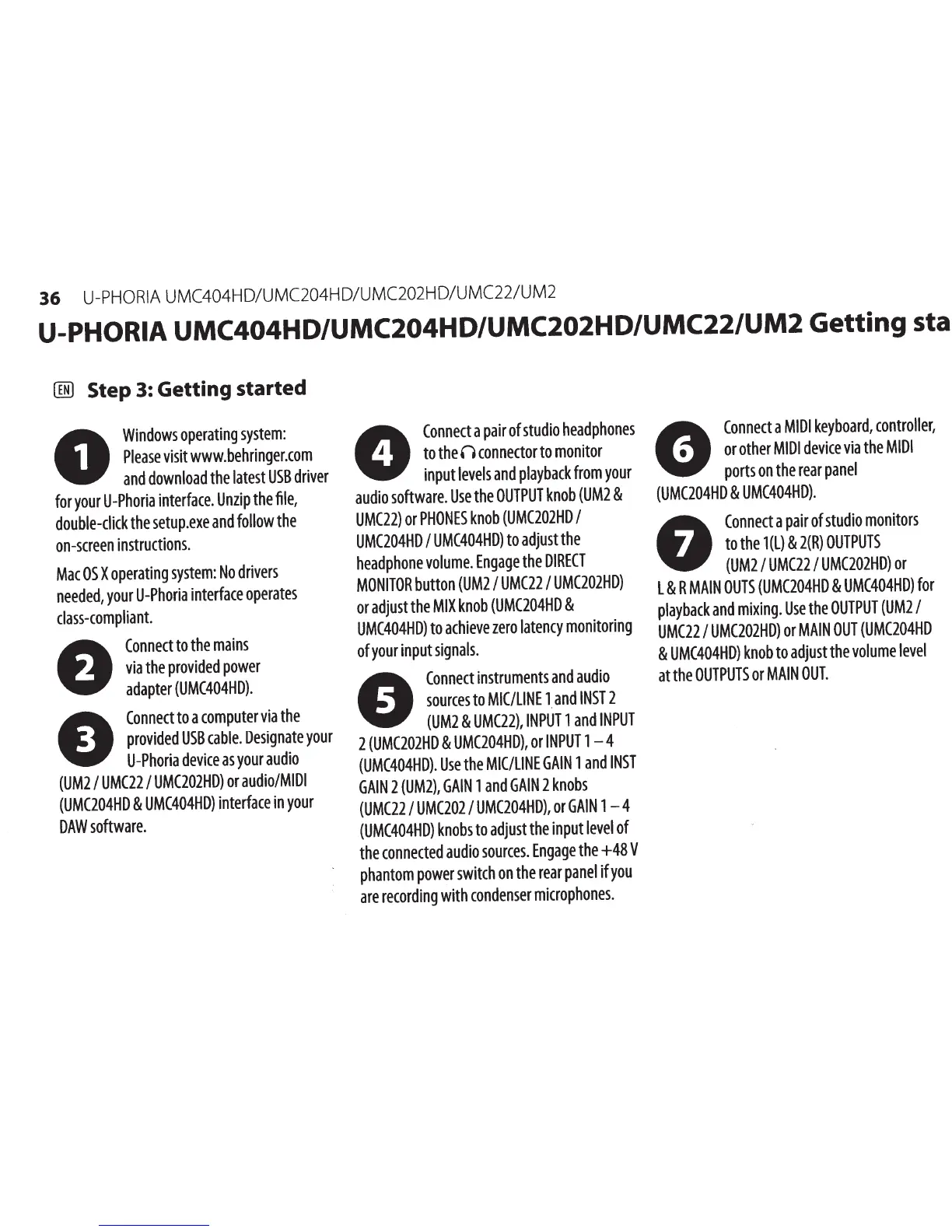 U-PHORIA UMC404HD/UMC204HD/UMC202HD/UMC22/UM2