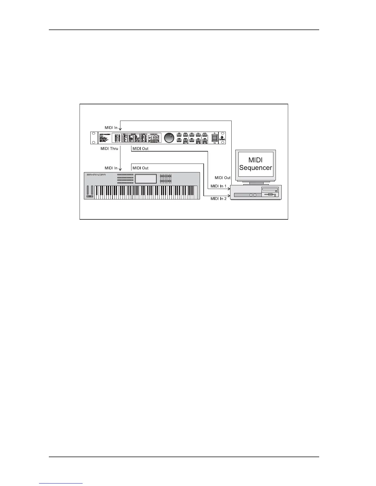 sequenzer or any other MIDI device. Wire and set up the VIRTUALIZER PRO as shown below: