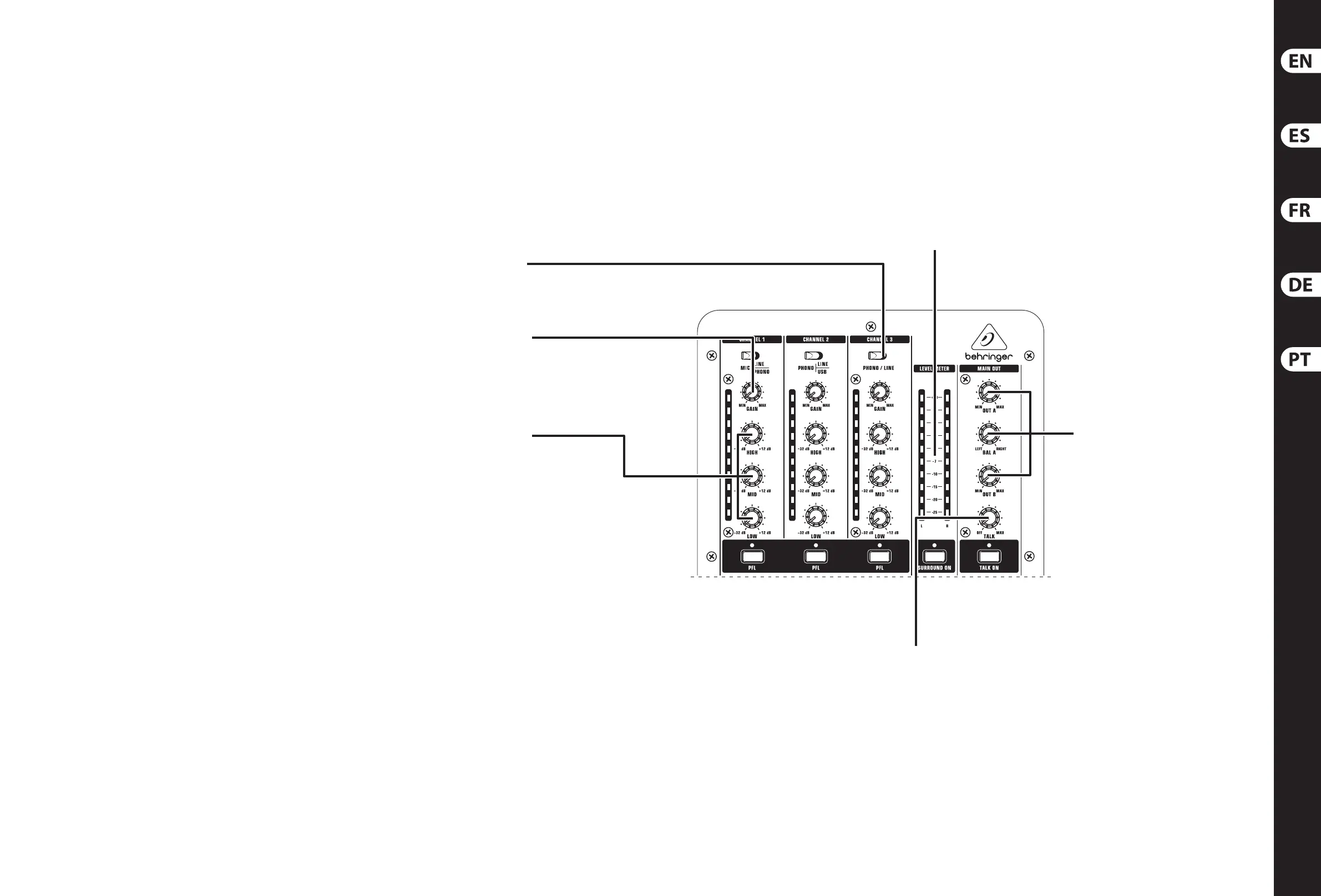 Pressione o botão MAIN/PFL