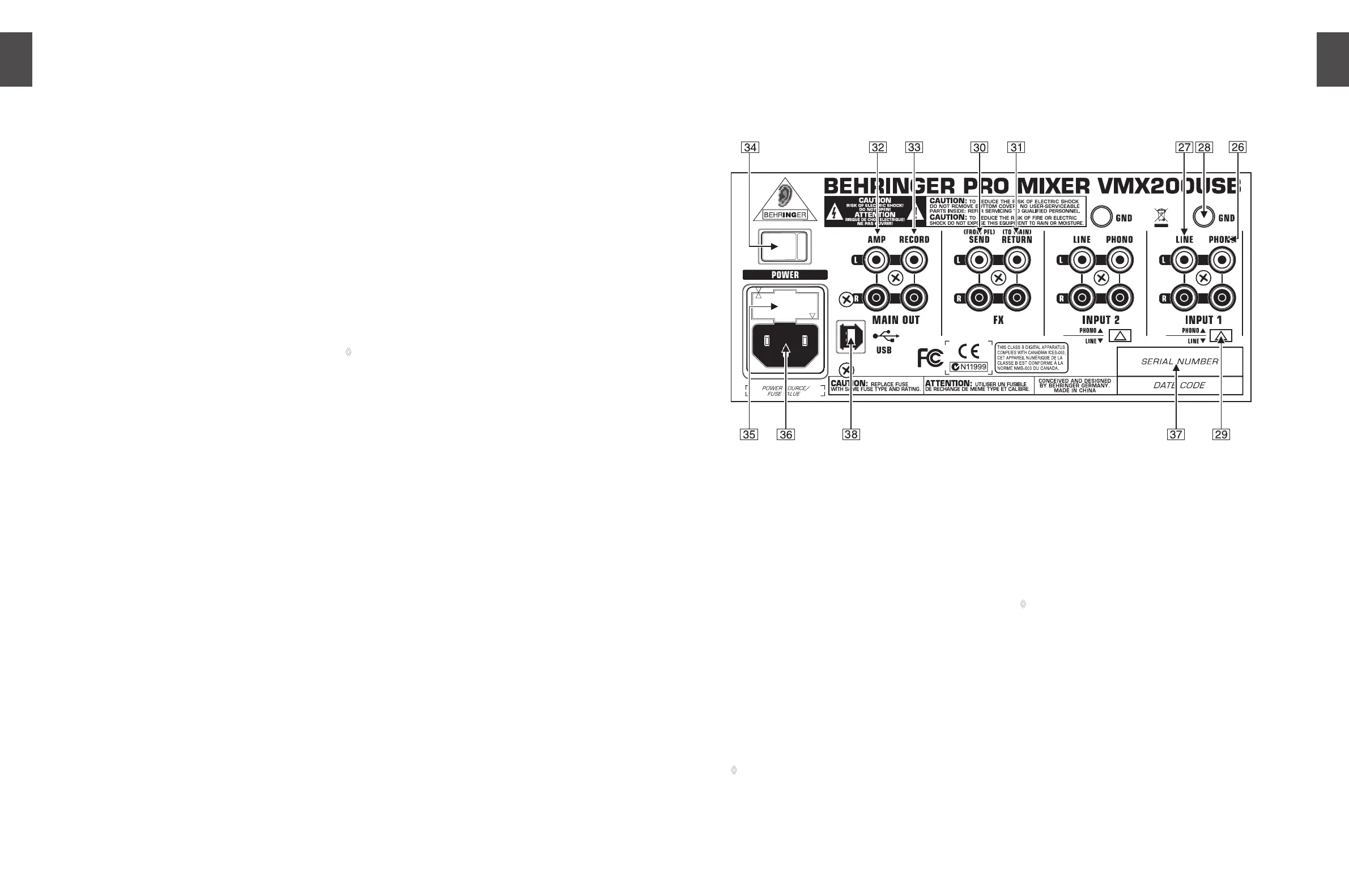 Fig 3.1: Rear view of the PRO MIXER VMX200USB