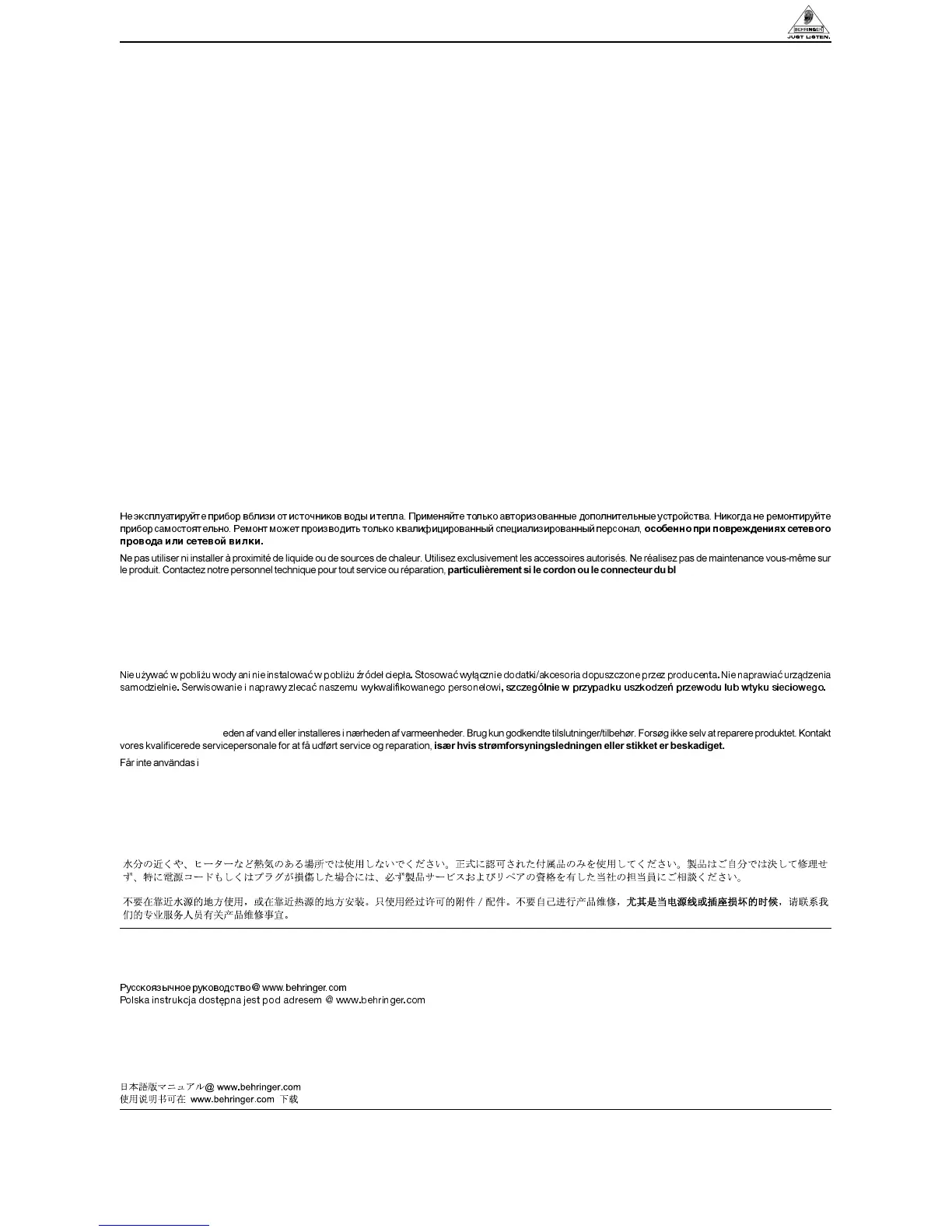 Ðóññê îÿçû÷íîåðóêîâîäñòâî@ www.behringer.com