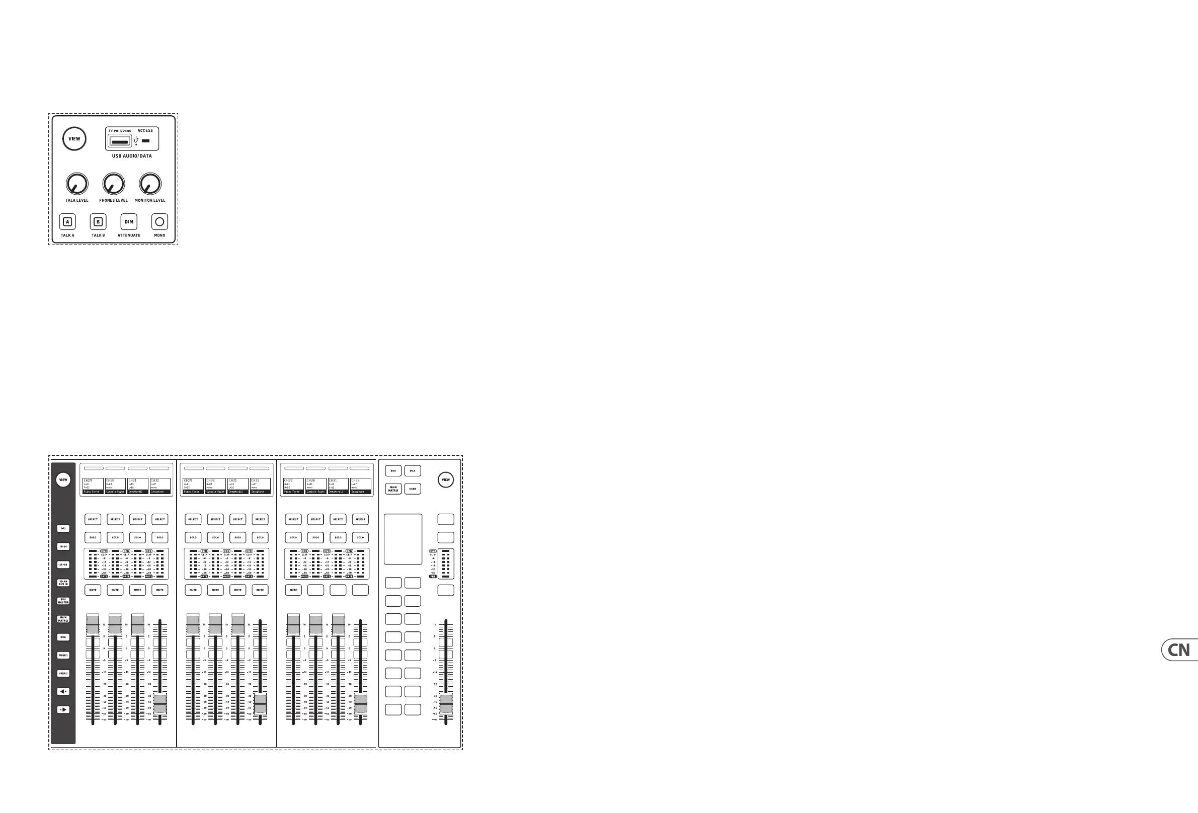 可以通过 TALK LEVEL 旋钮调整对讲麦克风的级别, TALK A 和 B 按钮将对讲信号发送到不同的目的地。 通道 40 或 Aux 8 可以用作对讲信号的