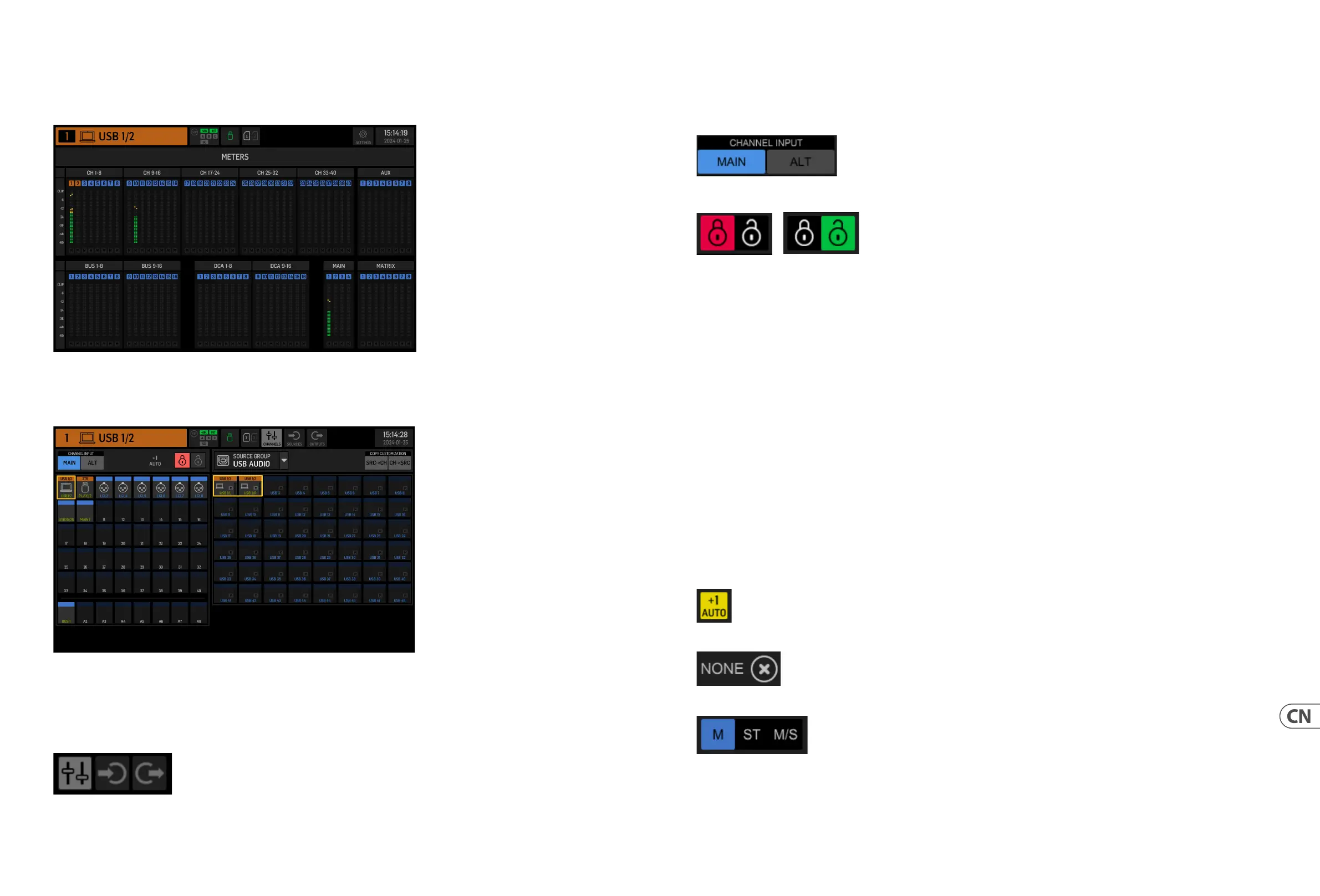 • • USB AUDIO: 控制台可以用作具有 48 个输入和输出通道的 USB 接口。