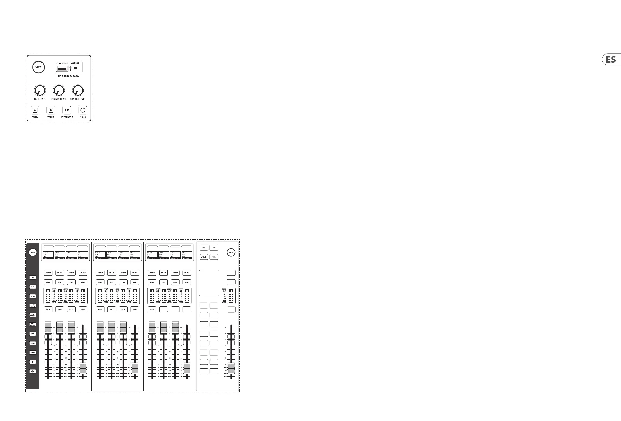 Presiona el botón VIEW para controlar la conguración del monitor, ajustar la cantidad de atenuación Dim, congurar el enrutamiento para el micrófono de talkback y