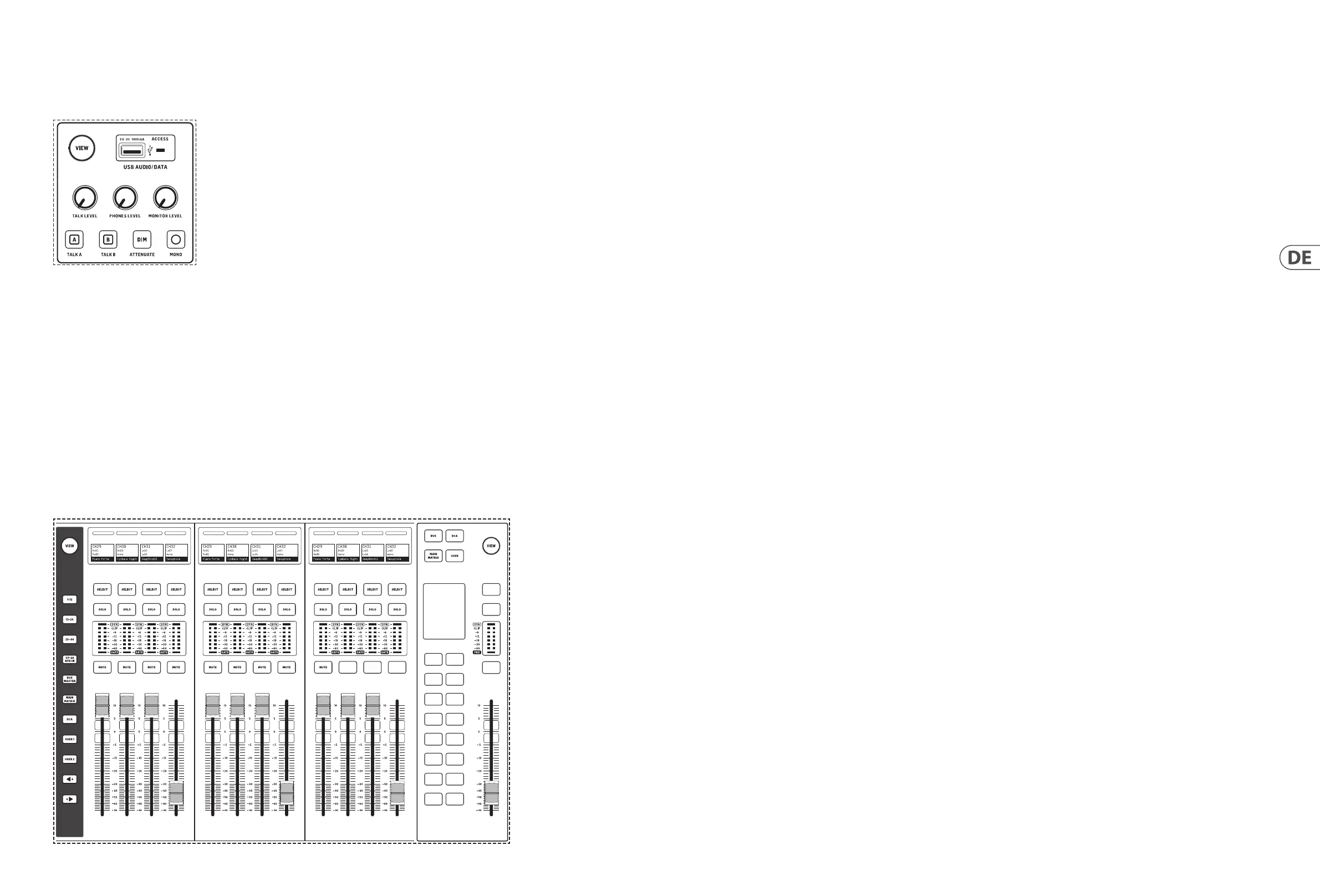 Um auf die Fader-Bank-Konguration zuzugreifen, drücken und halten Sie die VIEW-Taste. Um Kanäle der ausgewählten Bank zuzuweisen, ziehen Sie sie von den