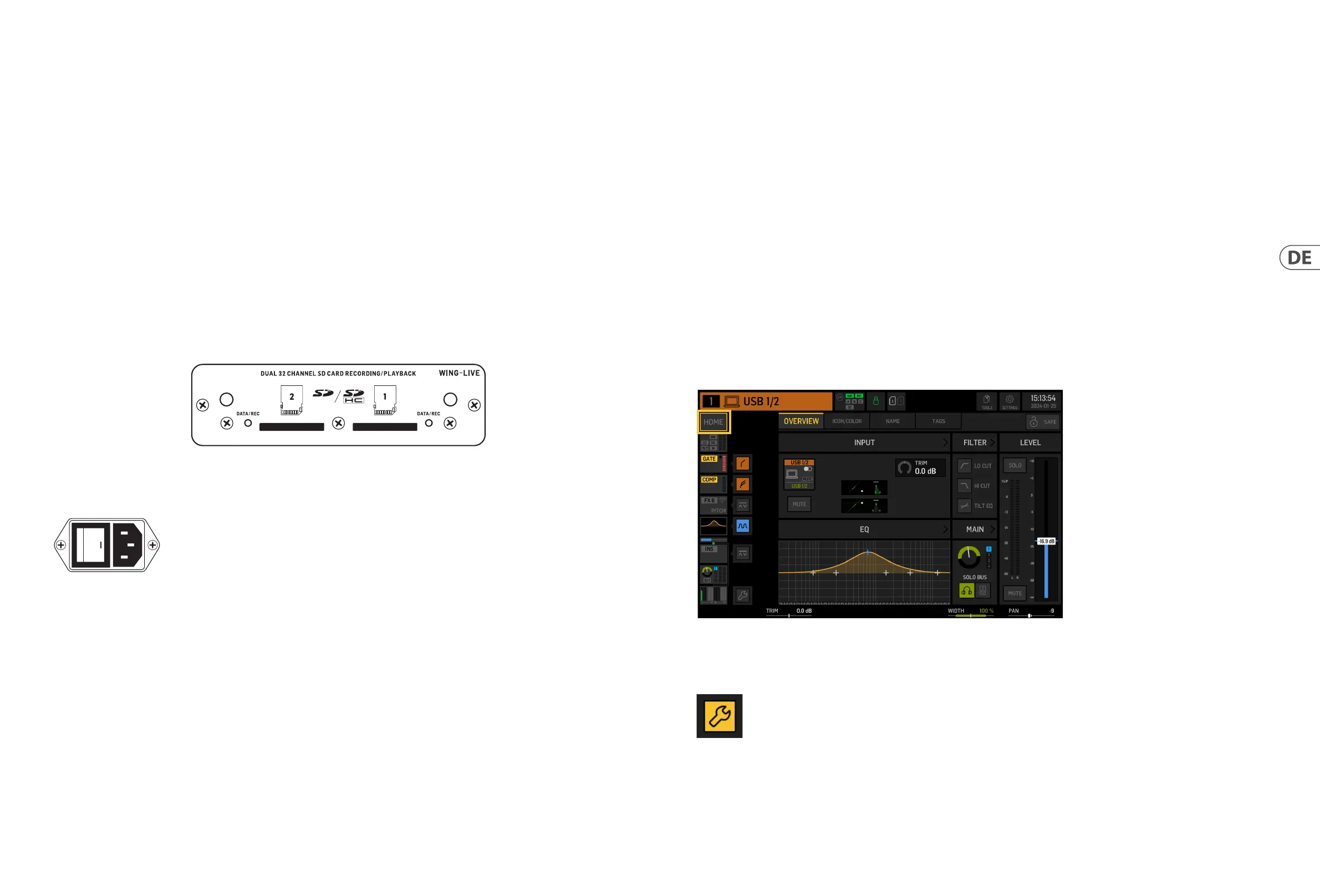 Die WING-Konsole wird mit der WING-LIVE-Karte ausgeliefert, die es ermöglicht, bis zu 64 Kanäle von 48 kHz / 32-Bit-Audio auf ein Paar SD- oder SDHC-Karten