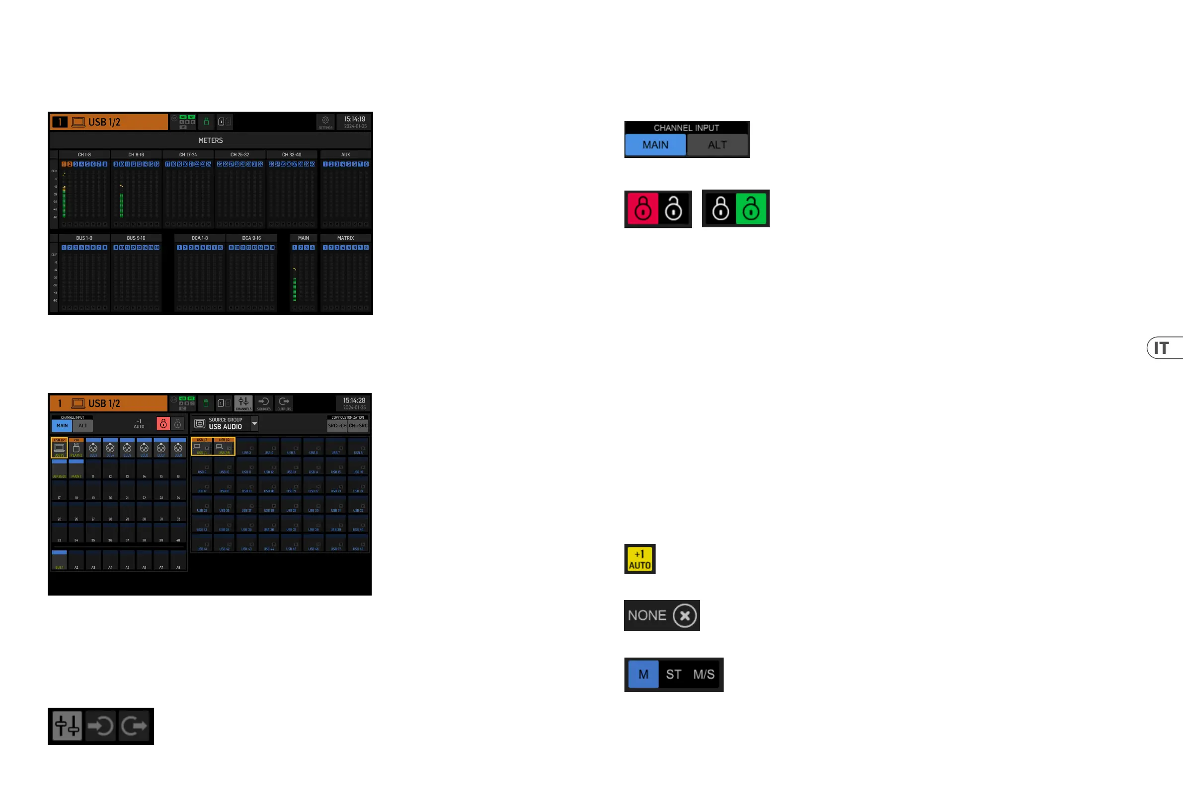 La congurazione mono, stereo o mid-side di ogni canale può essere congurata tramite i pulsanti M, ST e M/S.