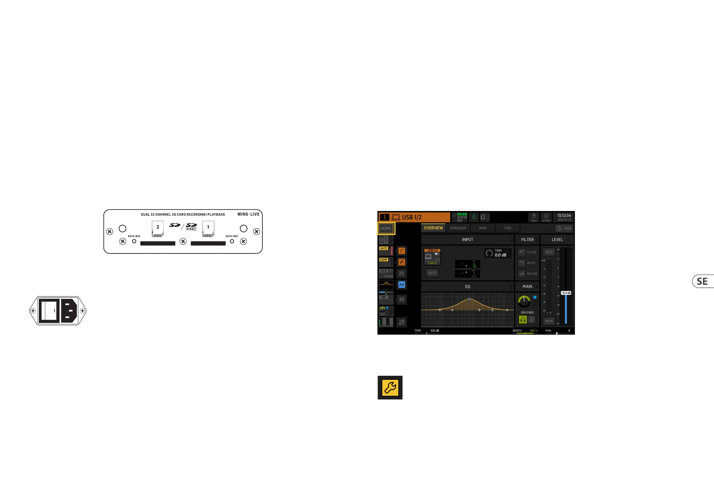 WING-konsolen levereras med WING-LIVE-kortet installerat, vilket tillåter upp till 64 kanaler av 48 kHz / 32-bitars ljud att spelas in på ett par SD- eller SDHC-kort. Kort