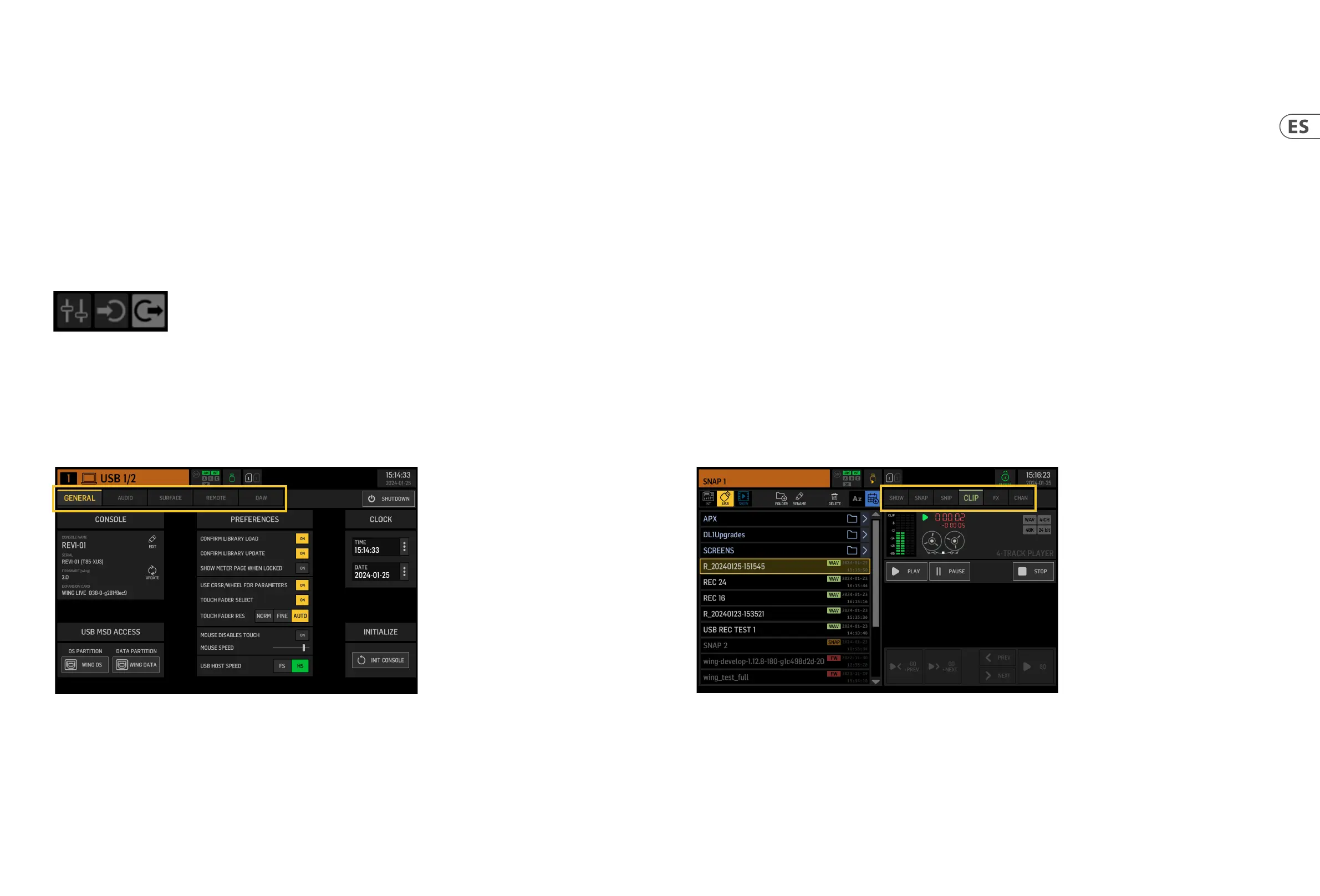 software en la consola. Seleccione WING DATA para gestionar los datos guardados de los espectáculos de la consola (espectáculos, recortes, instantáneas, ajustes