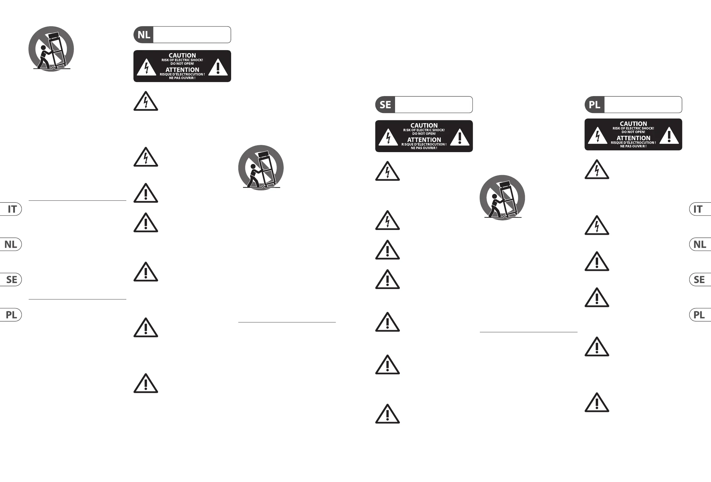 undvika risker genom elektriska stötar, genomför inga
