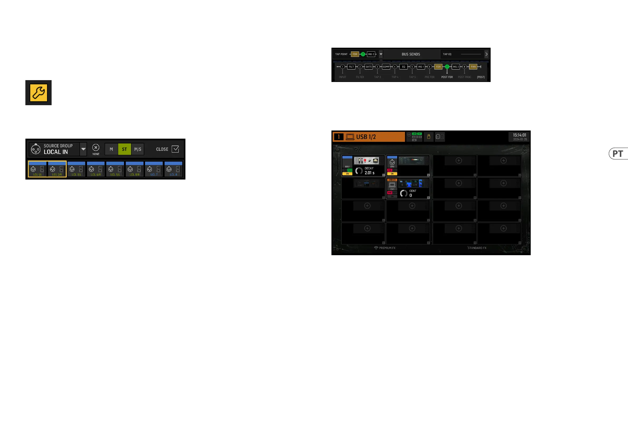 serão usados para envios de monitoramento ou efeitos, ou para subgrupo se os canais serão roteados para o ônibus para processamento comum, antes da mixagem