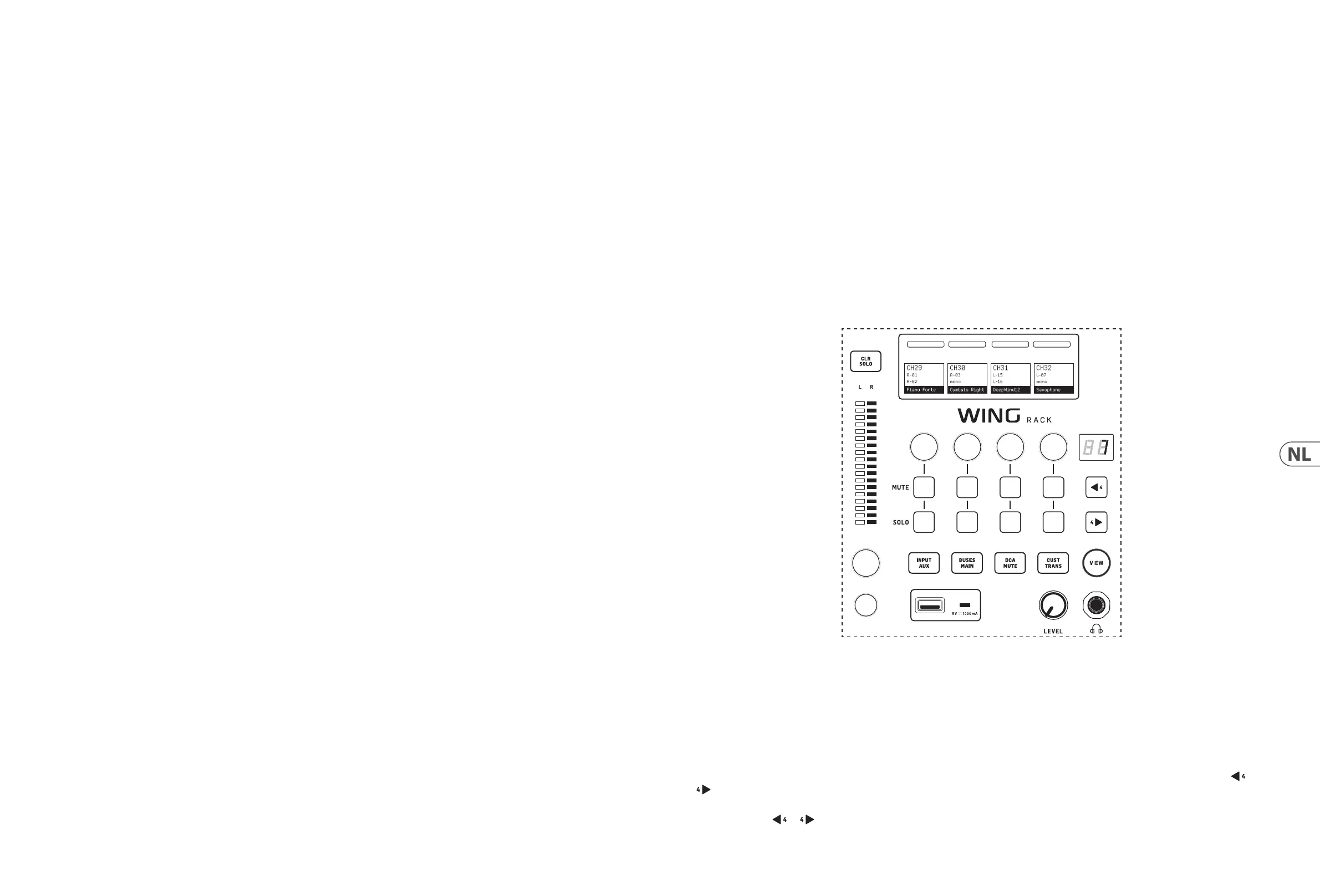 WING RACK heeft een speciaal geoptimaliseerde sectie voor snelle toegang tot de demp-, solo- en faderniveau-bedieningselementen van alle kanalen. Dempgroepen,