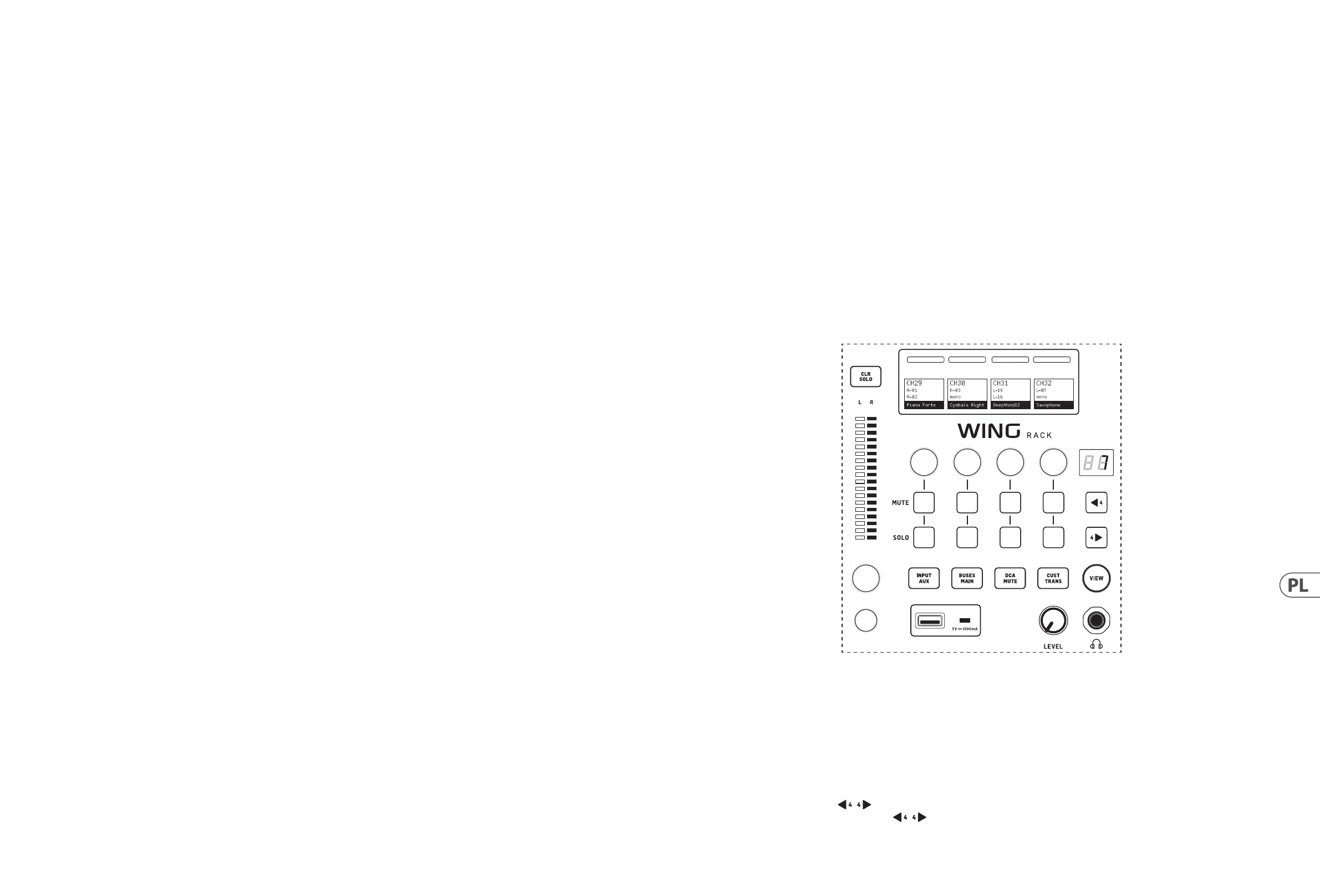 WING RACK ma specjalnie zoptymalizowaną sekcję do szybkiego dostępu do kontroli wyciszenia, solo i poziomu faderów wszystkich kanałów. Grupywyciszenia,