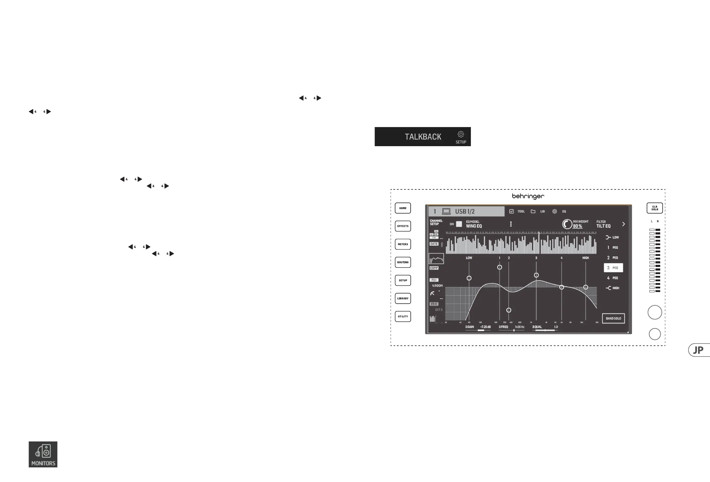 ます。さらにモニタリングセクションの設 定は、SETUP>MONITORS