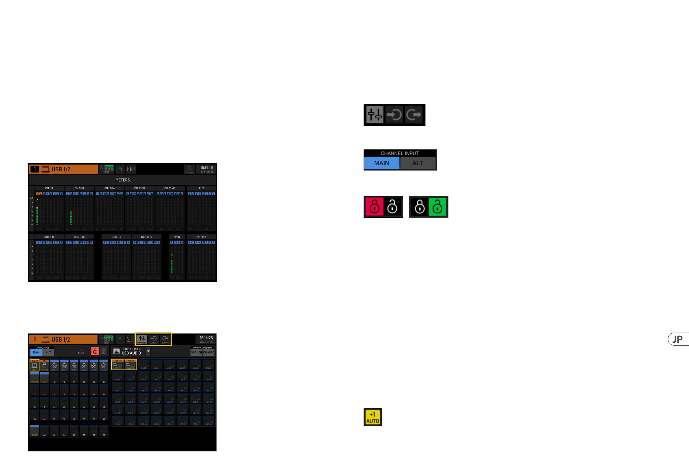 • • USB AUDIO: コンソールは 48 の入 力と出 力チャネルを持 つ USB