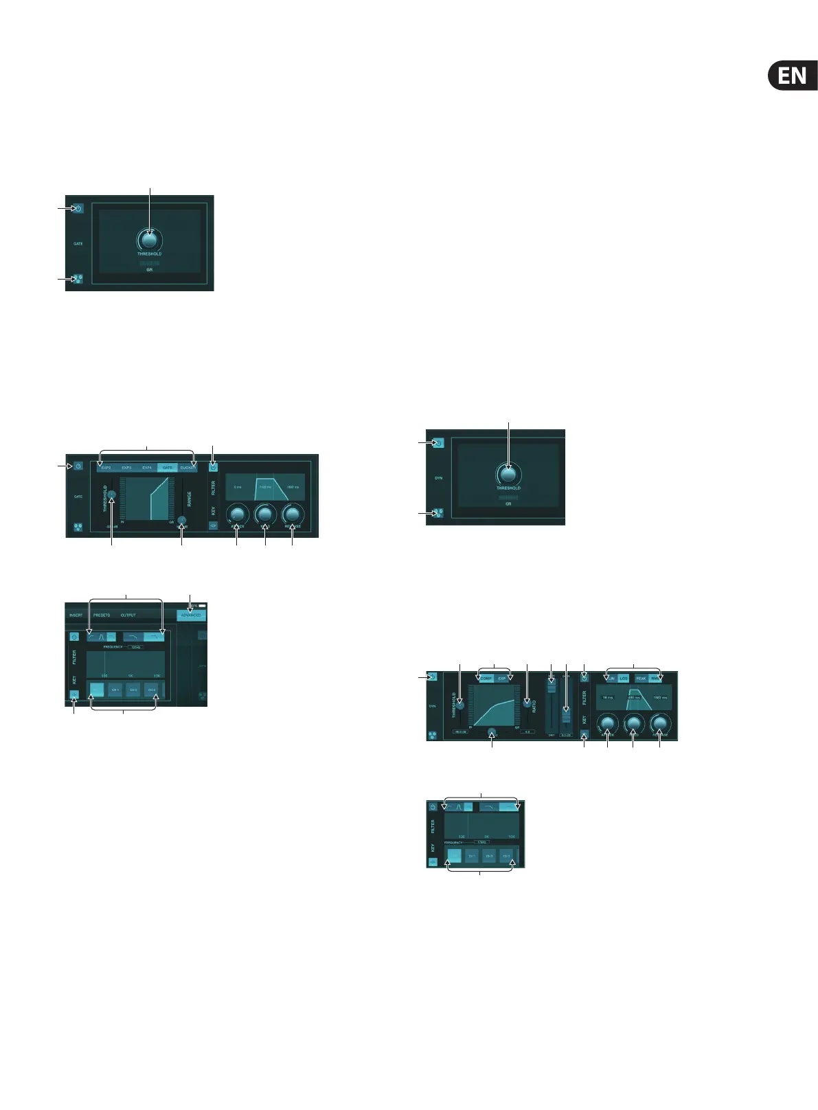 The Gate tab allows a noise gate to be engaged and adjusted to remove